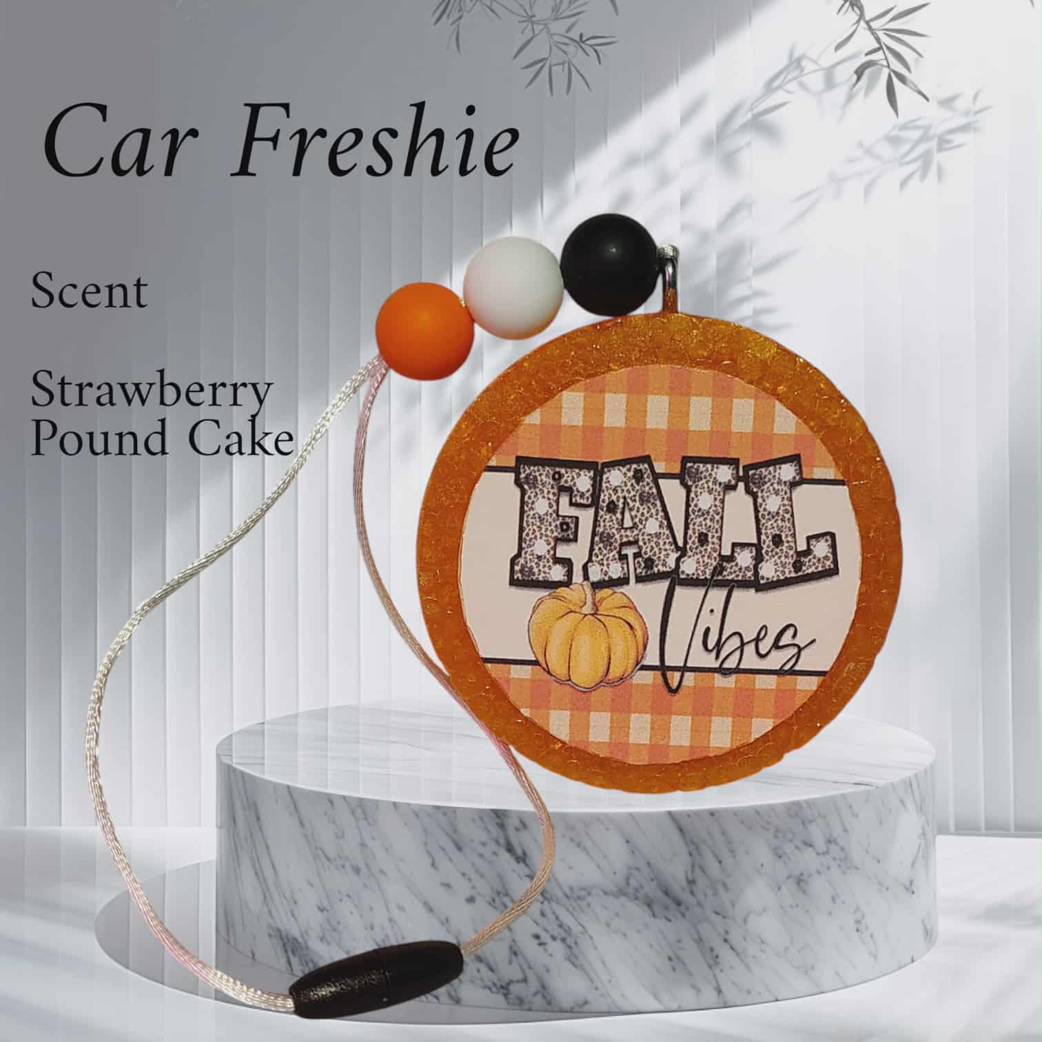 This is a beautiful Tennessee orange with a pretty Fall Vibes image. This is Strawberry Pound Cake scented.