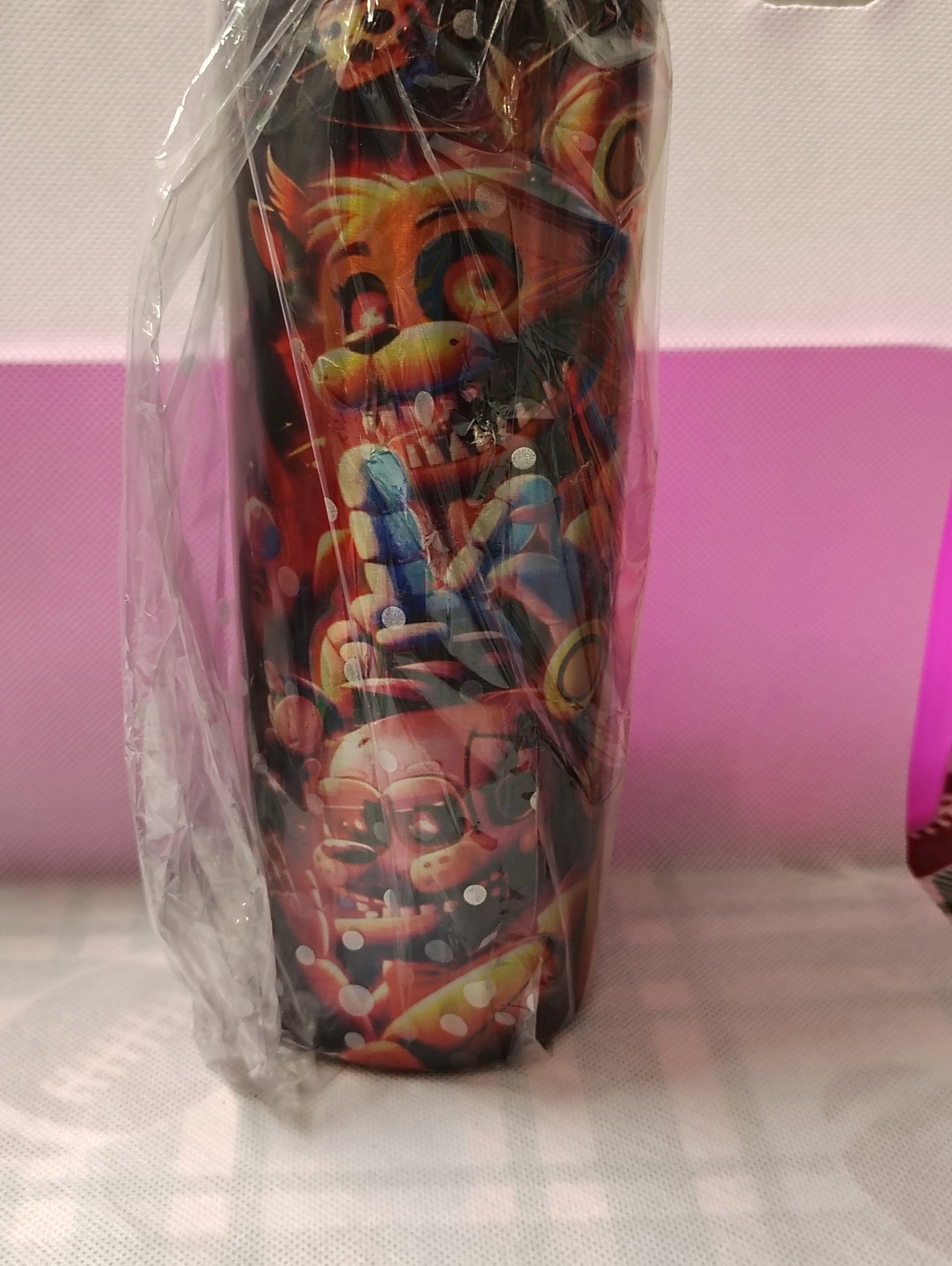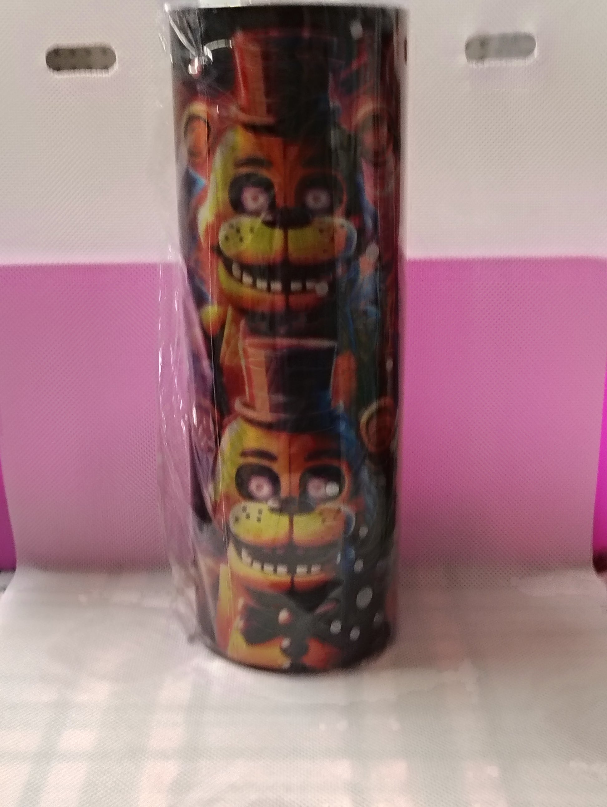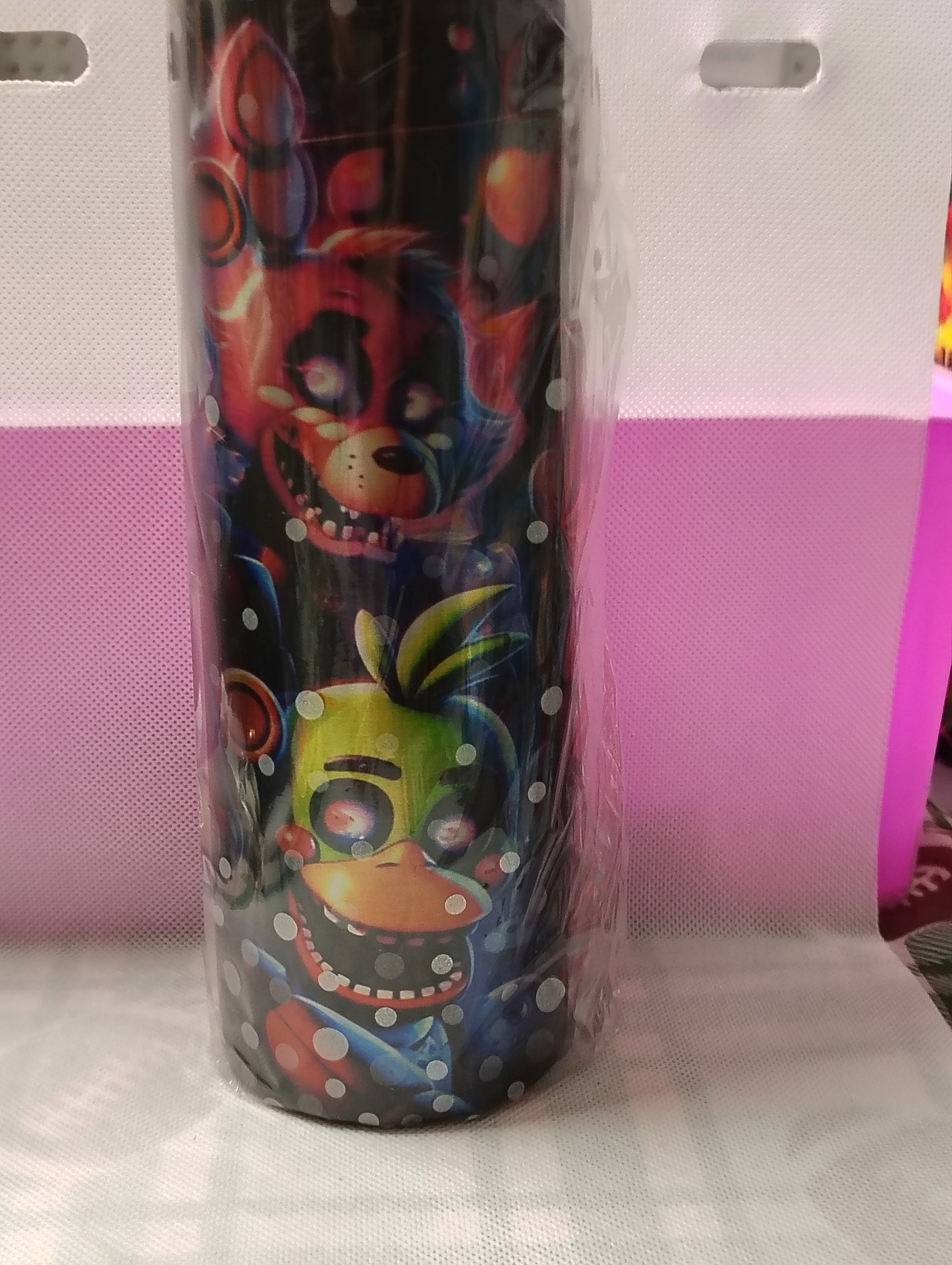20oz insulated stainless steel tumbler. Dark night theme. This image is on a silver stainless steel tumbler instead of a white stainless steel tumbler. Holds HOT/COLD drinks.