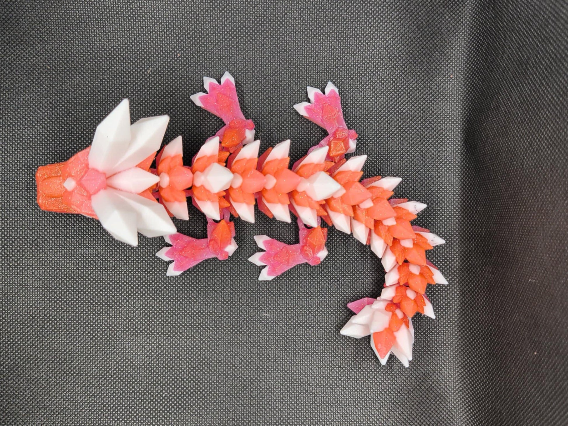 A beautiful 3d Orange/Pink ombre with White Crystal's. It has a glitter effect to it.