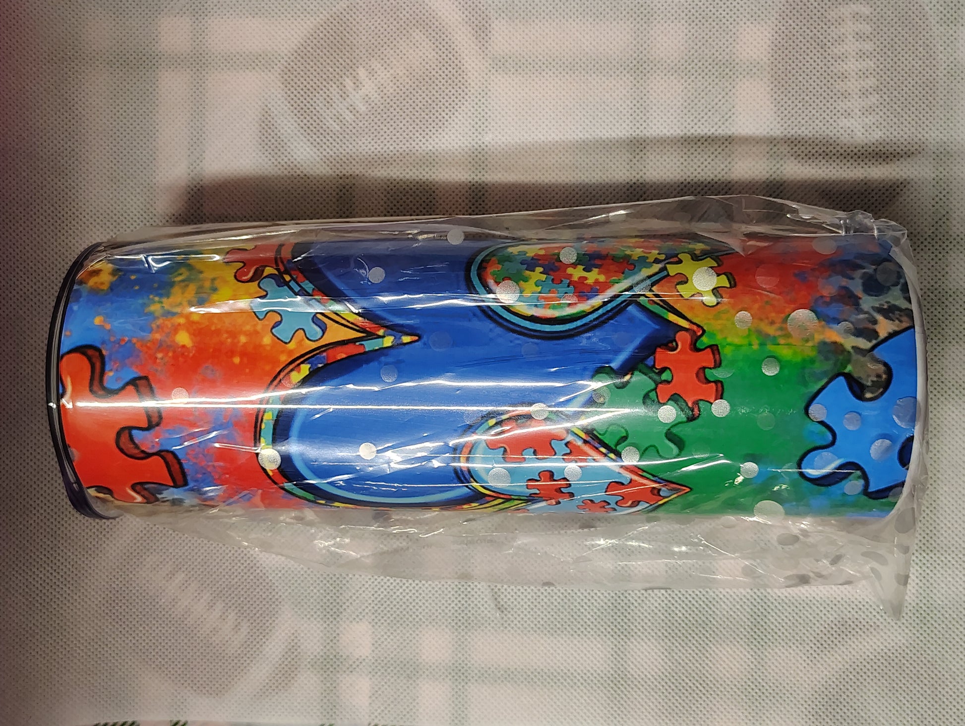 This is a beautiful 20oz puzzle piece autism insulated stainless steel tumbler. These are for Hot and Cold drinks.